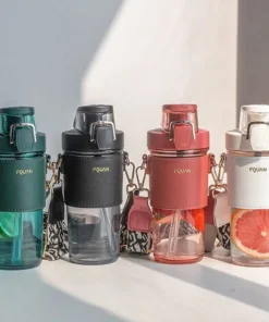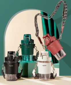 BOTELLAS PLÁSTICAS TRANSPARENTES CON ARNÉS Y CORREA SIMIL CUERO DE EXCELENTE CALIDAD. DETALLES EN COLOR ORO, 4 COLORES DIFERENTES PARA ELEGIR. SORBETE DE SILICONA. INCLUYE CORREA ESTAMPADA PARA COLGAR.