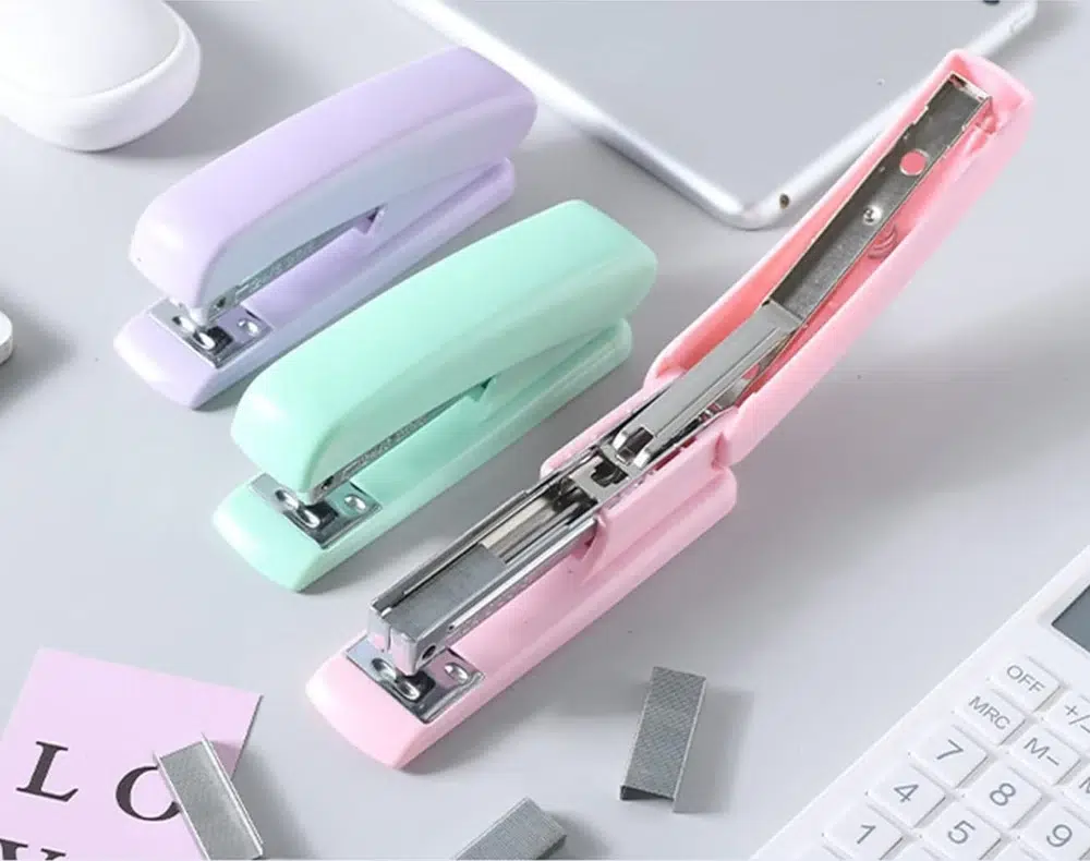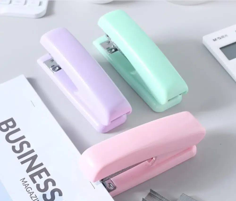 ABROCHADORA PLÁSTICA IDEAL PARA ESCRITORIO EN COLORES PASTEL. ABROCHA HASTA 25 HOJAS. LLEVA GANCHOS 24/6.