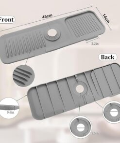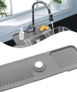 Alfombrilla de silicona, su funcion es que el drenaje inclinado dirige el agua al fregadero, las varillas de silicona elevadas aumentan el flujo de aire, mantienen tus encimeras libres de agua estancada y permiten que los artículos se sequen más rápido. El diámetro del orificio para la canilla es de 3.5cm