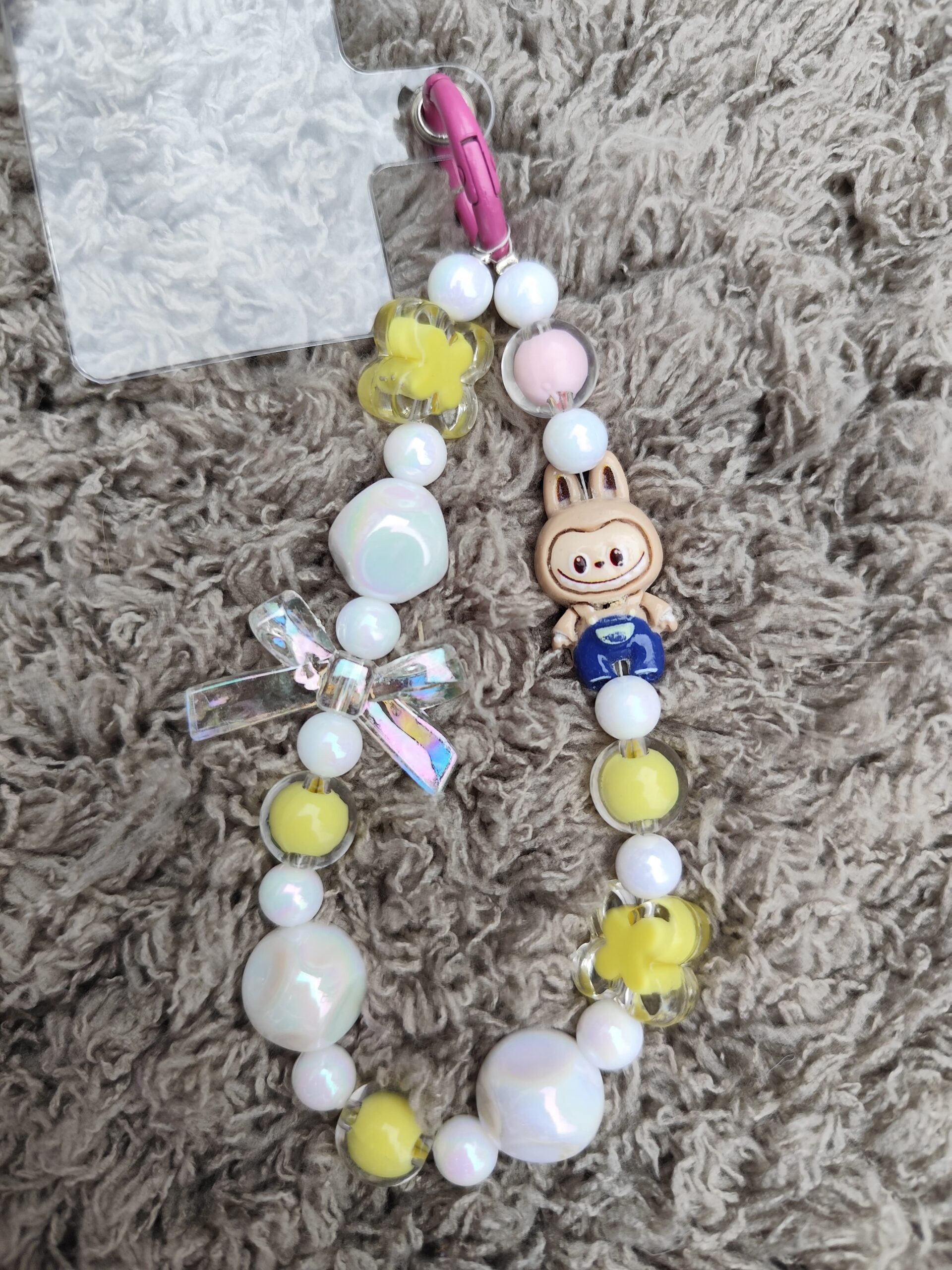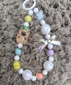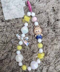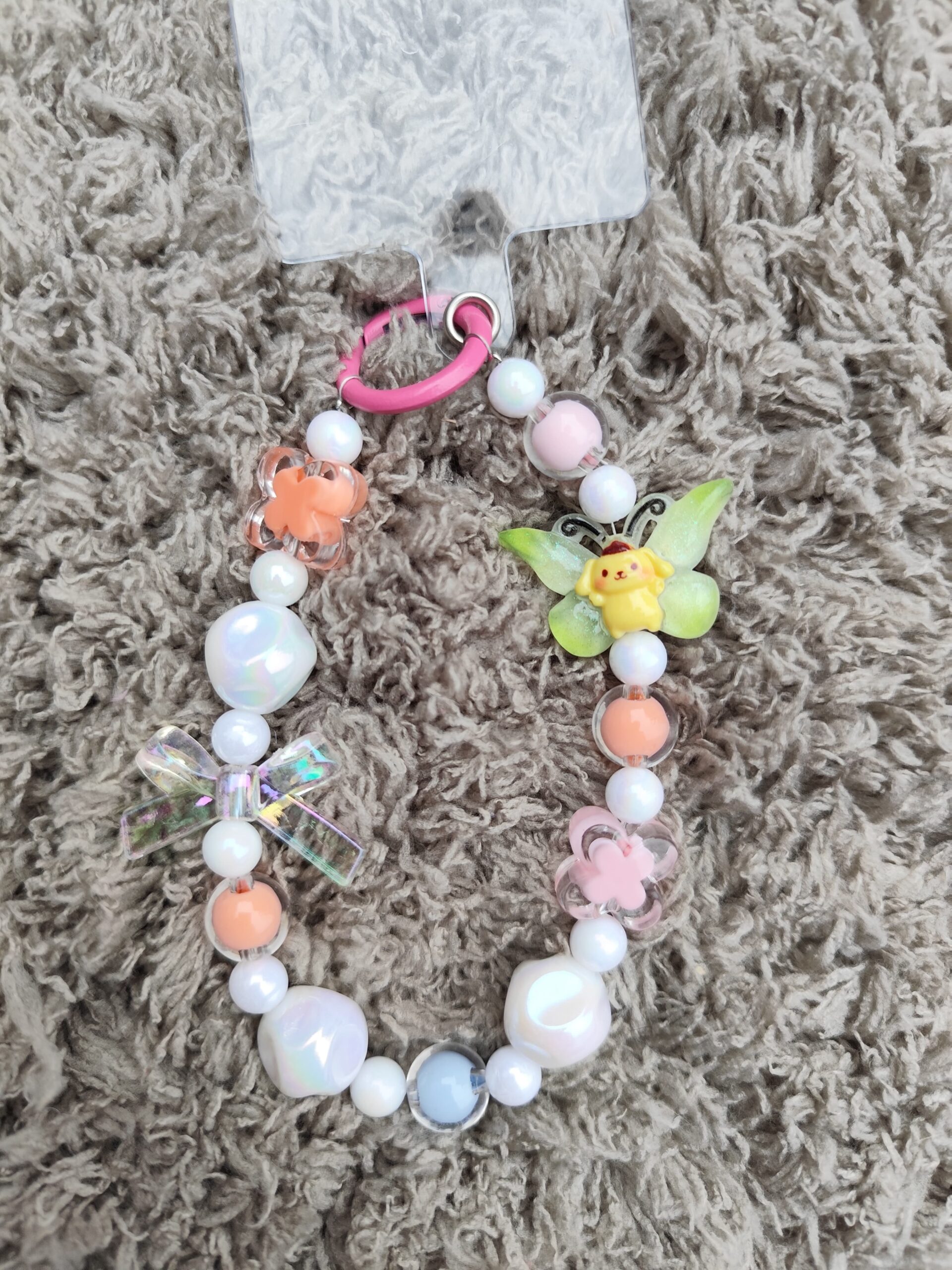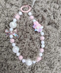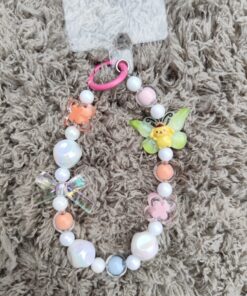 Tené tu celular siempre a mano y bien sujeto. Hecha con mostacillas perladas en tonos rosa y blanco, con un colgante que le da un toque especial. Su gancho resistente evita caídas y pérdidas.