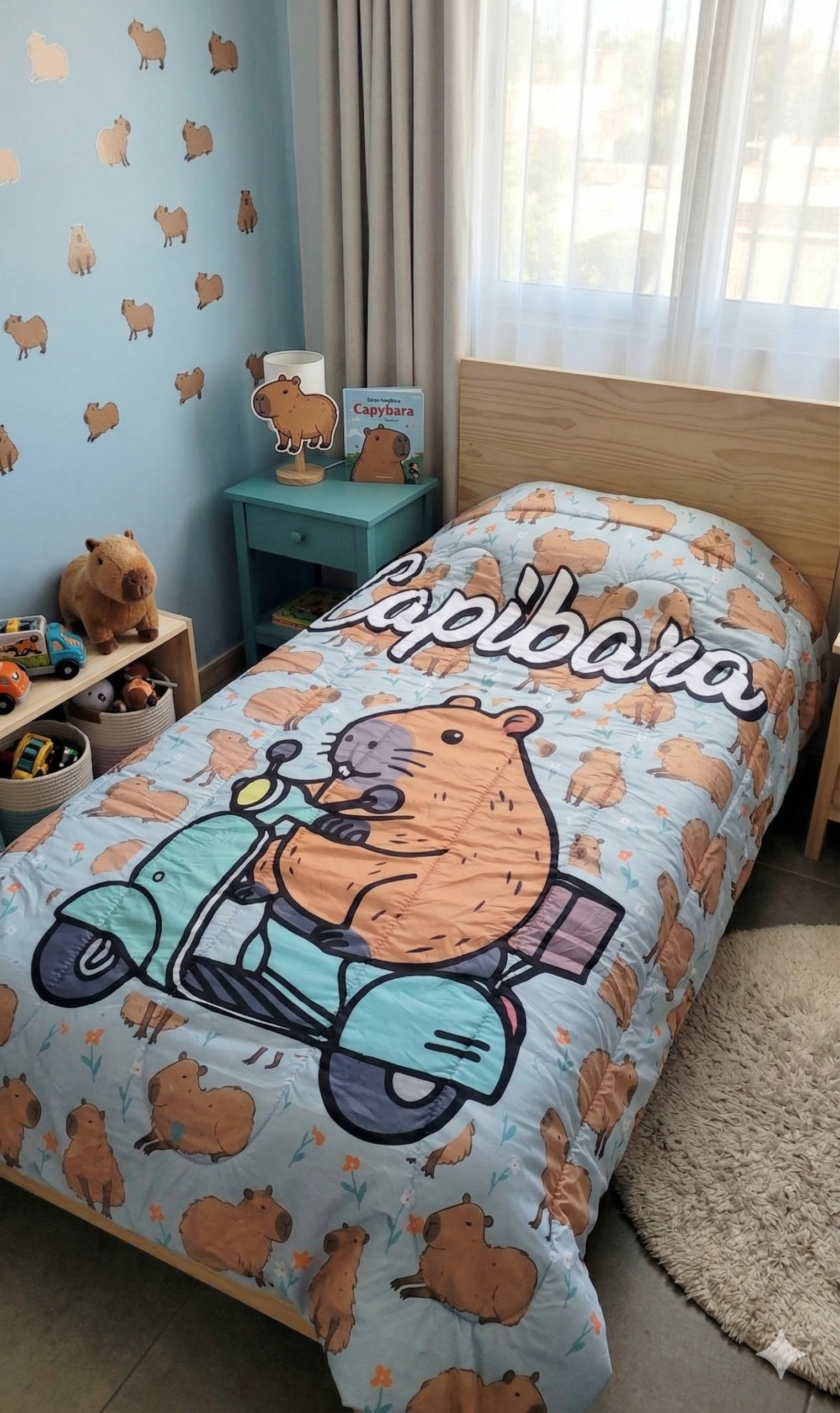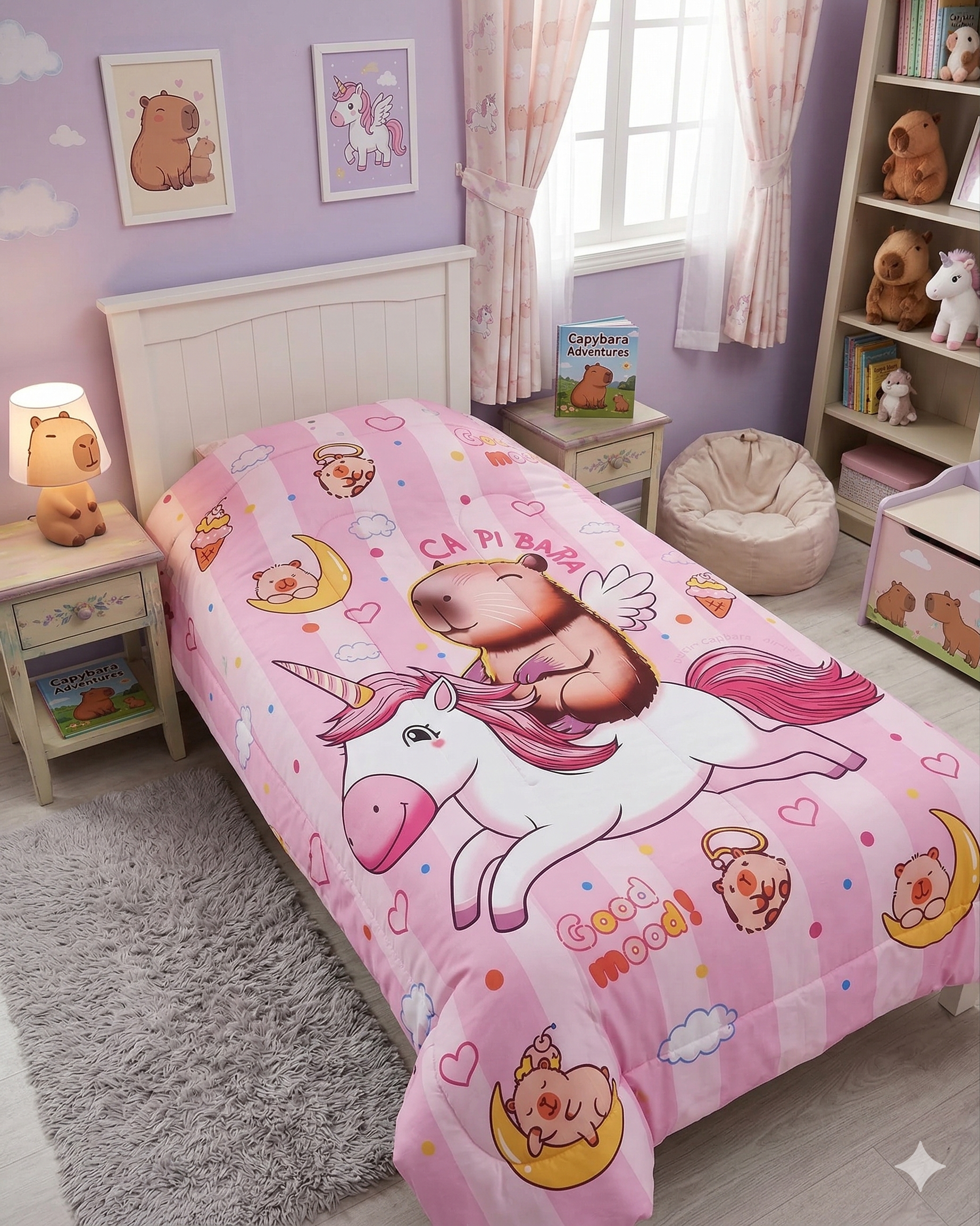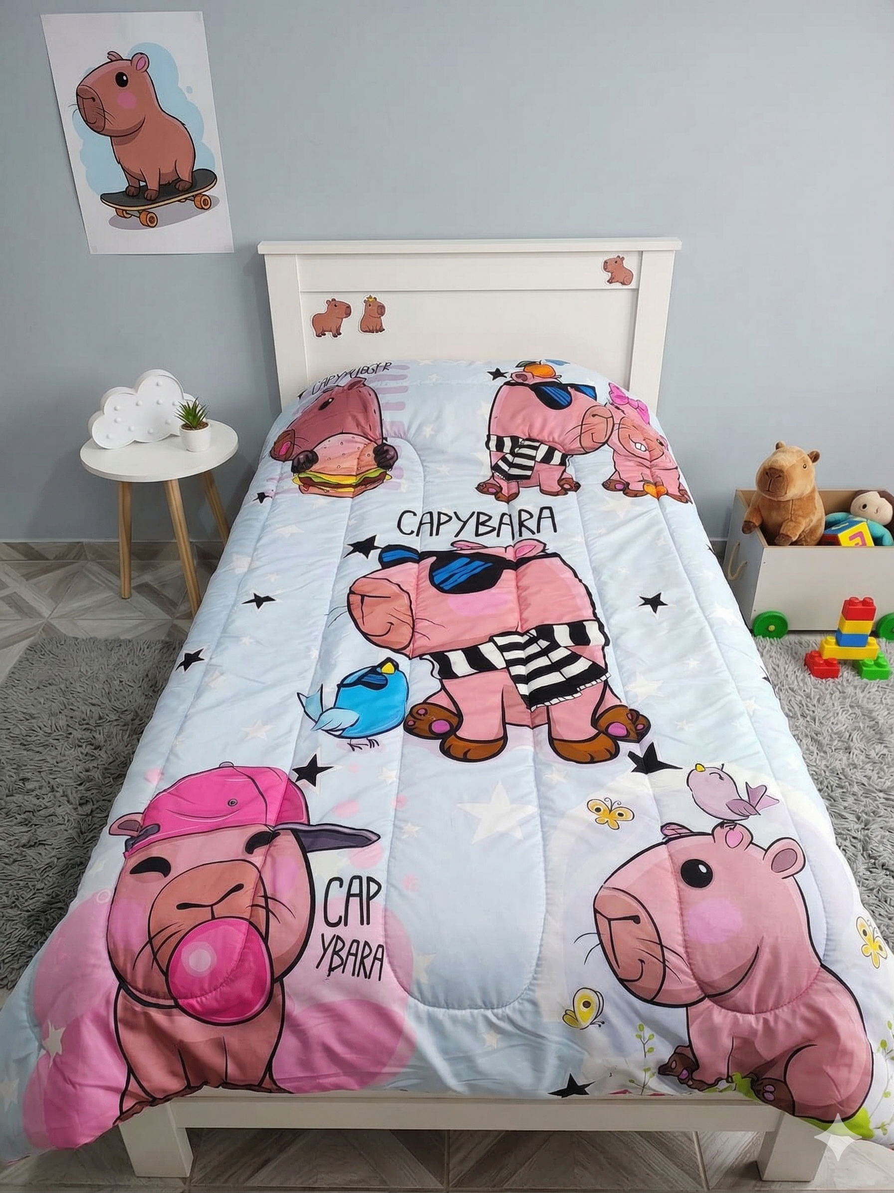 Acolchado de diseño funcional, ideal para todo el año. Este modelo combina una cara superior de matelassé texturizado con estampas sublimadas de alta definición y un reverso de microfibra soft que asegura suavidad y ligereza en el uso diario.