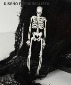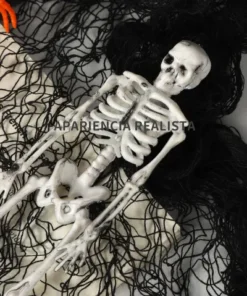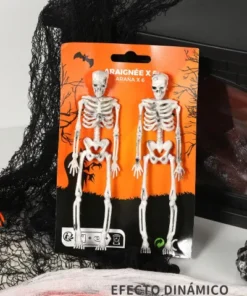 Pack de 2 esqueletos articulados de plástico en color blanco con detalles oscuros. Son livianos y fáciles de colocar como decoración de Halloween, ideales para colgar, ambientar mesas, rincones o armar escenas terroríficas. Presentación en blister.