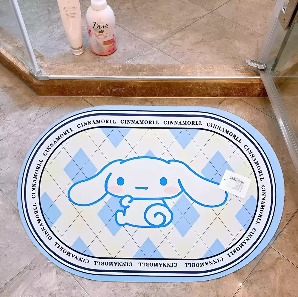 Alfombra de baño con diseño de personajes Sanrio. Cuenta con una base antideslizante y una tela super suave. Ideal para usar luego de tomar una ducha.