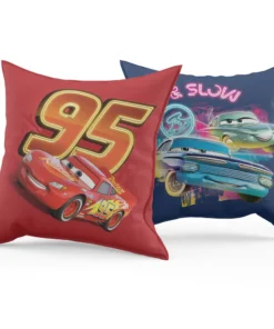 Almohadon decorativo con el diseño del Rayo Mc Queen. Llená de colores tu hogar con este Almohadon reversible.