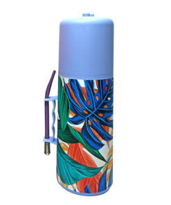 3 – Coloque el sorbete central en el orificio de la tapa y enrosque todo junto, para evitar derrames de agua.