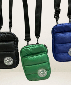 Bandolera confeccionada en tela, con correa regulable y cierre