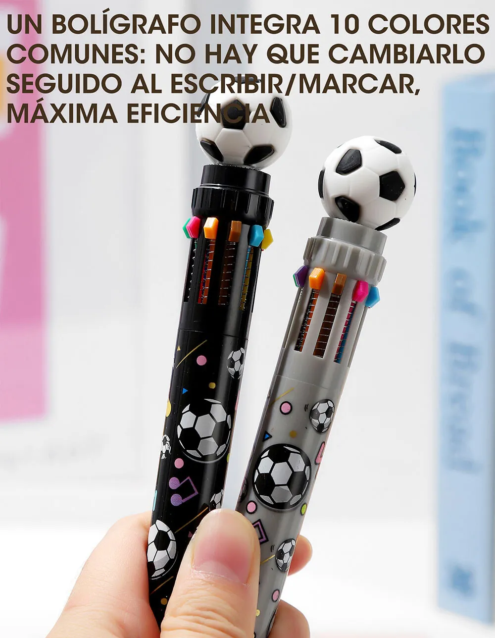 Bolígrafos retráctiles multicolor con temática de fútbol. ideal para escribir, subrayar y organizar notas con 10 colores diferentes, sin necesidad de cambiar de bolígrafo.