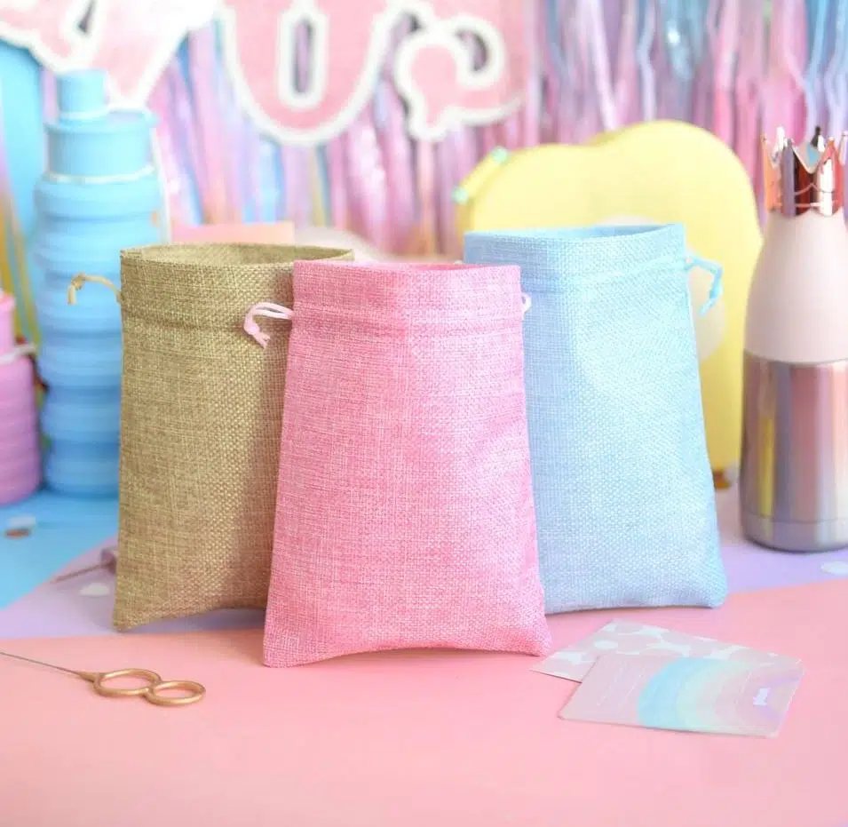 Bolsita de regalo de arpillera son perfectas para empaquetar joyas, manualidades, jabón, velas, regalos de boda y otras cosas pequeñas. También se puede utilizar con especias, hierbas, bolsitas, granos de café y té.