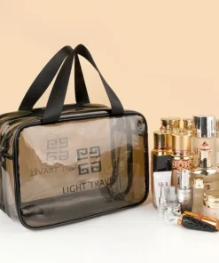 Cuenta con 2 compartimentos principales: el primero es impermeable a prueba de agua y el segundo cuenta con una red para guardar objetos húmedos. Ideal para viajes, portacosmeticos y deportes