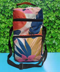 Son de cordura sublimada con unos colores increíbles, tiene una tira larga para poder cruzarte bolso, bolsillo al frente para llevar cositas y el interior es impermeable. Están geniales!!