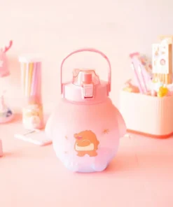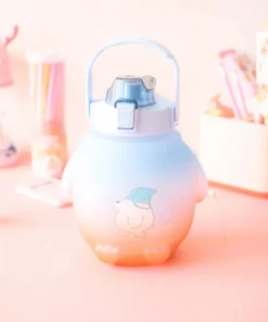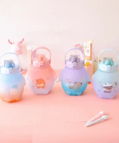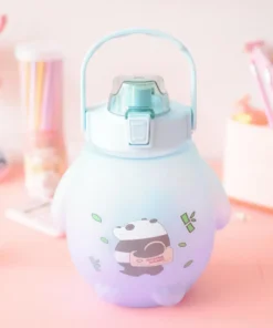 BOTELLAS PLÁSTICAS REDONDAS DEGRADÉ CON TAPA DE COLORES. 4 ESTAMPAS DIFERENTES DE OSOS PARA ELEGIR. SORBETE DE SILICONA Y CORREA. VIENE CON STICKERS PARA DECORAR.