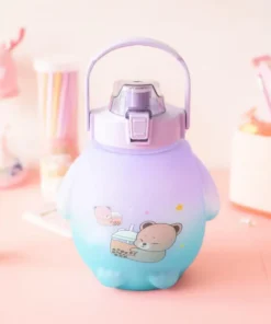 BOTELLAS PLÁSTICAS REDONDAS DEGRADÉ CON TAPA DE COLORES. 4 ESTAMPAS DIFERENTES DE OSOS PARA ELEGIR. SORBETE DE SILICONA Y CORREA. VIENE CON STICKERS PARA DECORAR.