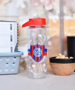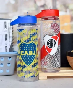 Botella plástica con tapa a rosca, con pico y sorbete.