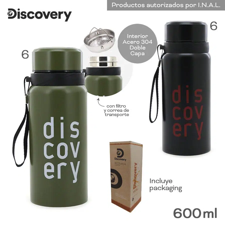 Info: 600 ml de capacidad, con correa de transporte y filtro, incluye packaging