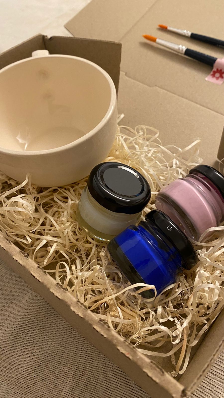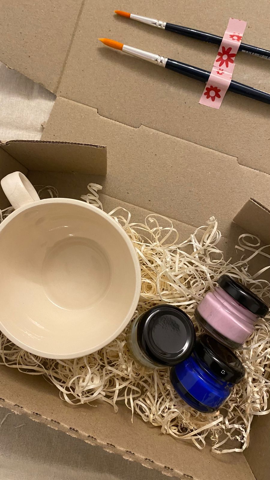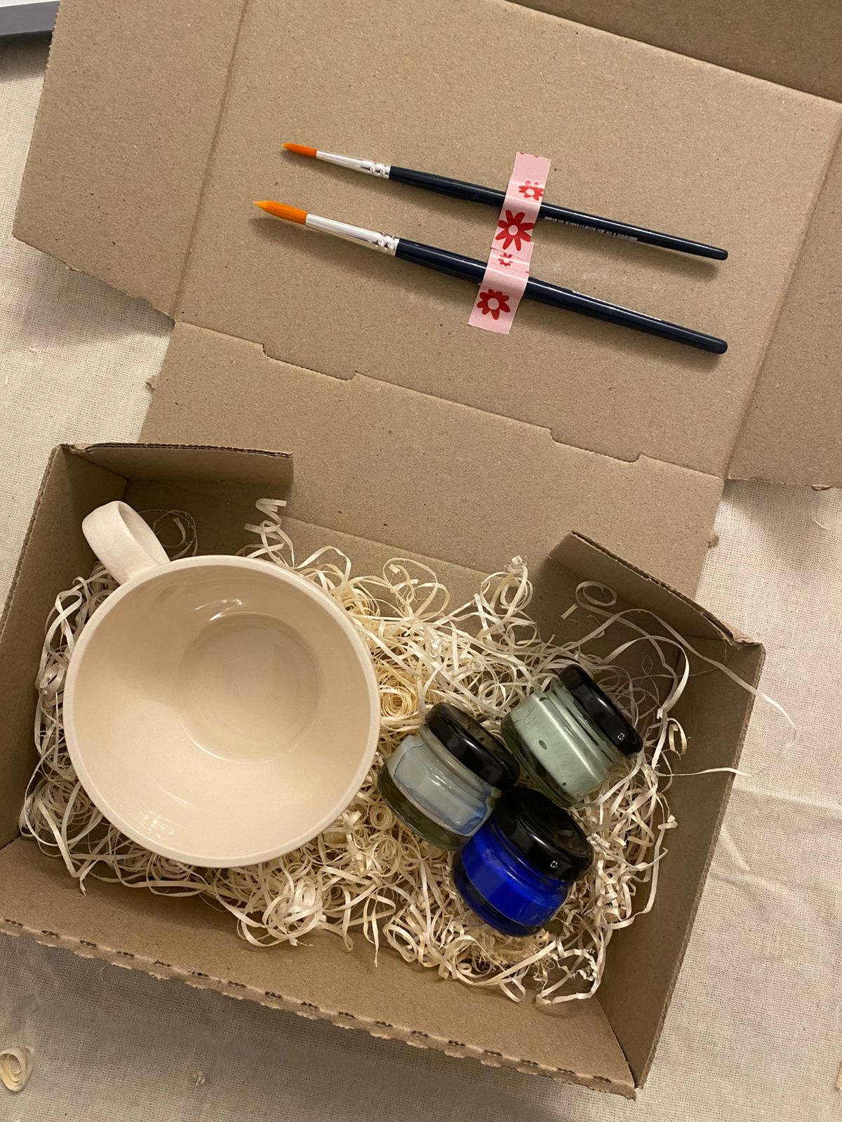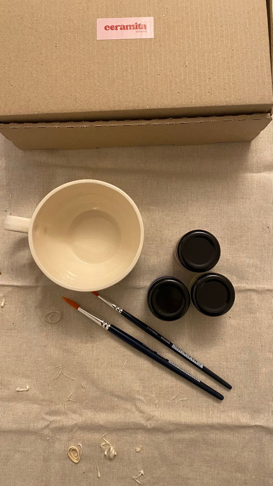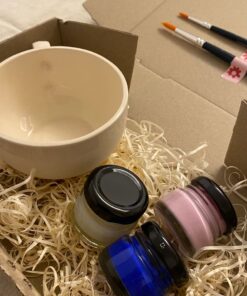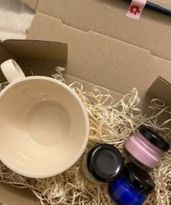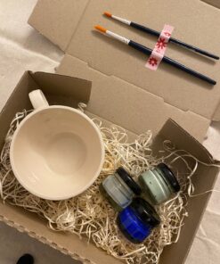 Pintá la taza con los colores incluidos, dejando secar bien entre capa y capa.