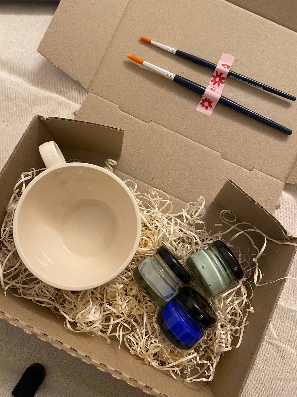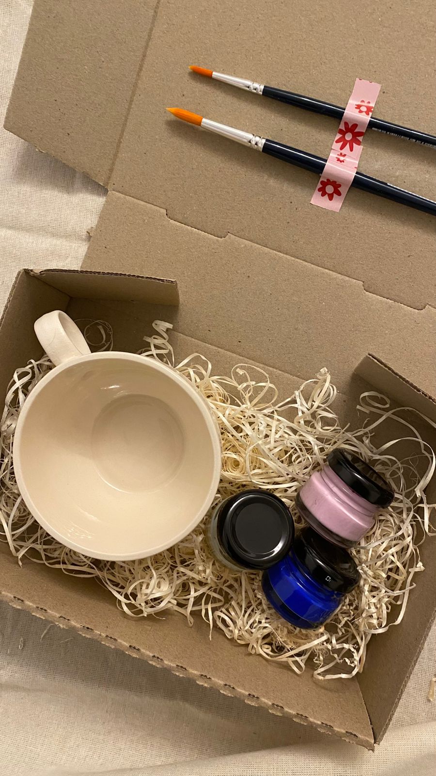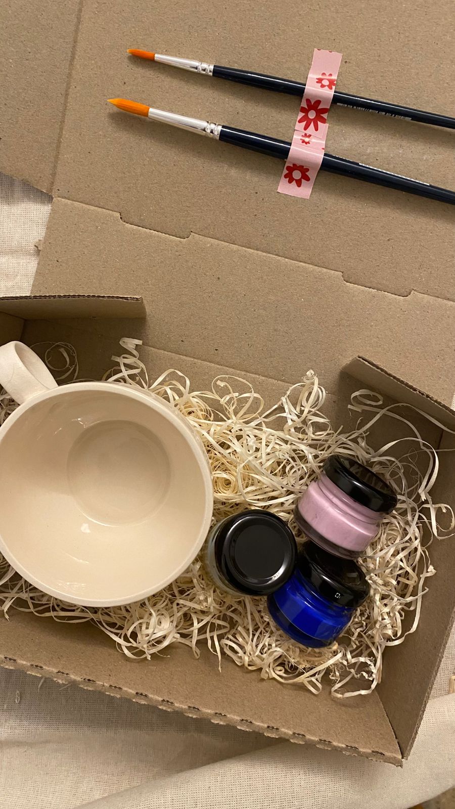 Pintá la taza con los colores incluidos, dejando secar bien entre capa y capa.