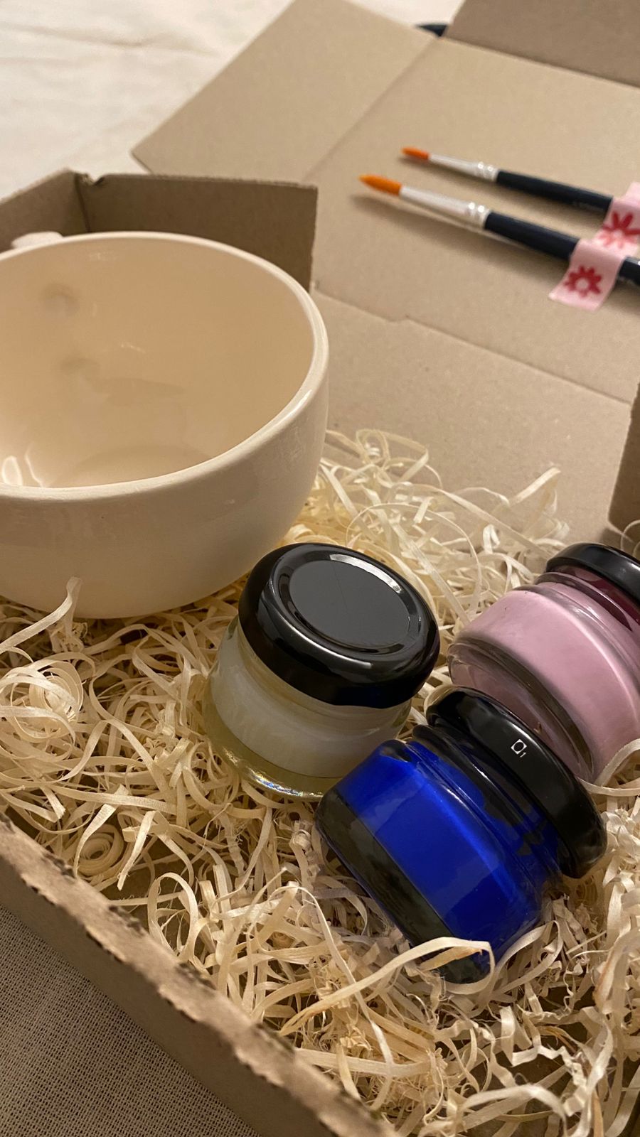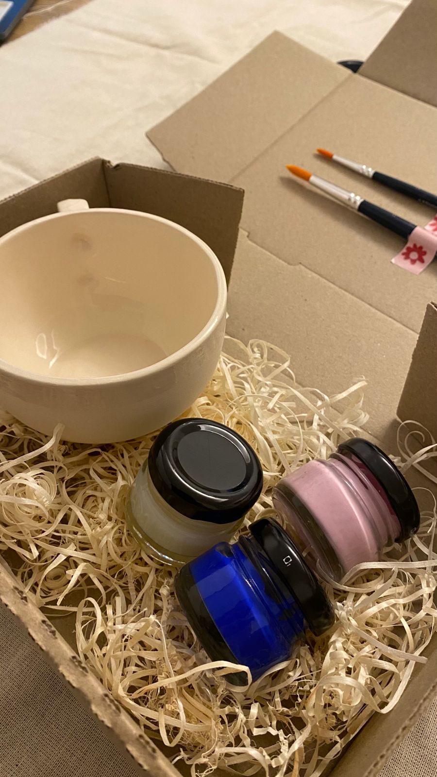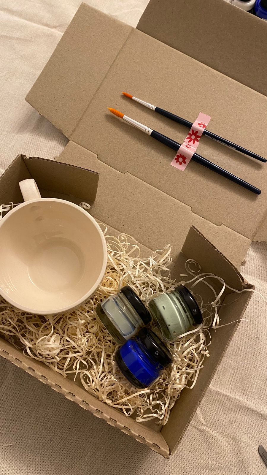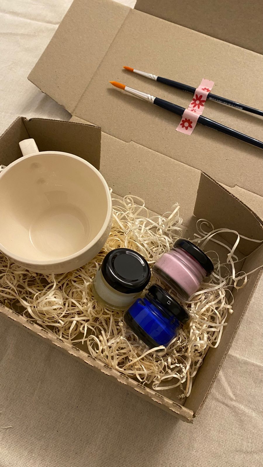 Pintá la taza con los colores incluidos, dejando secar bien entre capa y capa.