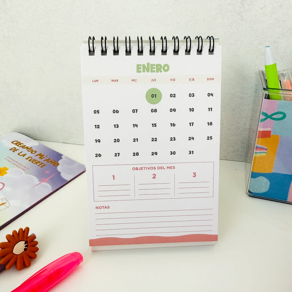 Calendario 🗓️ Súper práctico y liviano, ideal para tener en el escritorio. Te permite ver todo el mes de un vistazo y organizarte con facilidad. Un básico infaltable para mantener tus días en orden.