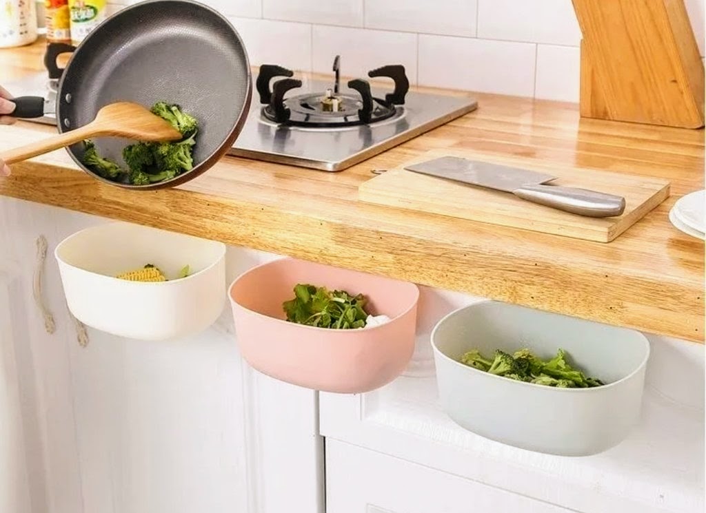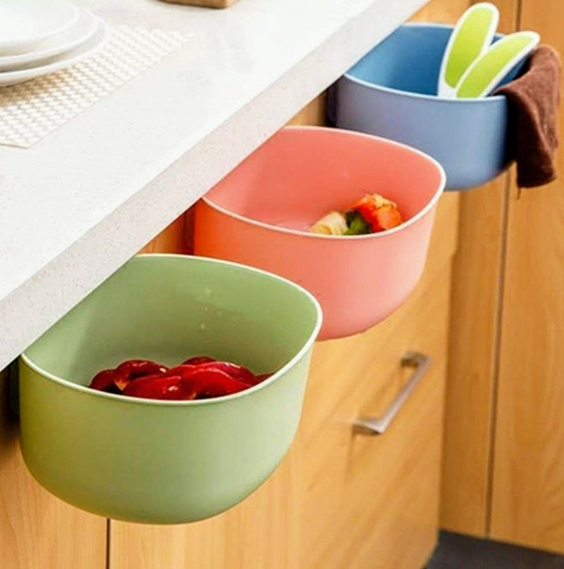 Podrás colgarlo de las puertas de bajo mesada y así cortar tus alimentos para almacenarlo en el canasto.