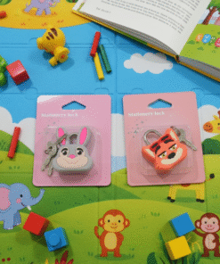 El accesorio perfecto para los más pequeños. Este candado infantil combina diversión y seguridad, ideal para mochilas, estuches o lockers. Su tamaño compacto y cierre sencillo lo hacen práctico para que los niños lo usen con facilidad.
