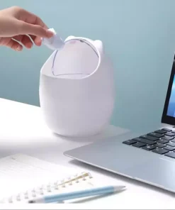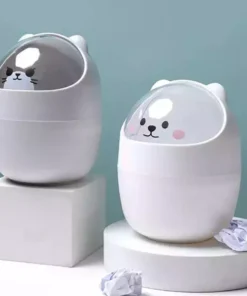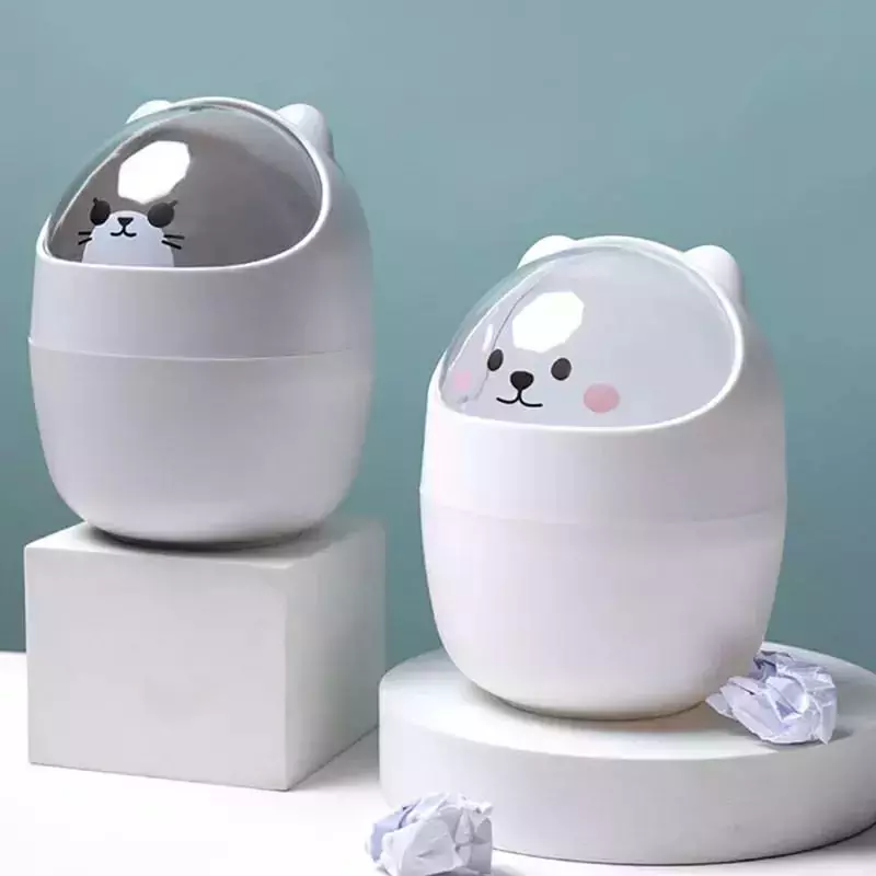 Mini basurero de escritorio con parte superior rebatible, de plástico, creativo con cara de animalito y orejetas, resistente a las caídas.