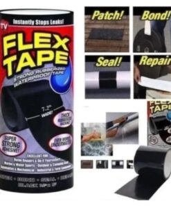 FLEX TAPE ® es una cinta de caucho impermeable, súper fuerte que puede parchar, unir, sellar y reparar prácticamente todo. ¡FLEX TAPE® está especialmente formulada con una recubierta posterior gruesa, flexible y de caucho que se adapta a cualquier forma u objeto! FLEX TAPE® se puede aplicar caliente o fría, húmeda o seca … ¡Incluso bajo el agua! ¡FLEX TAPE® sella instantáneamente el agua, el aire y la humedad para crear una barrera impermeable, flexible y súper fuerte! ¡FLEX TAPE® es extra ancho (4 ”, 8” y 12 ”) para cubrir rápidamente grandes grietas, espacios y agujeros! FLEX TAPE® es resistente a los rayos UV, ecoamigable, libre de COV y puede soportar un amplio rango de temperaturas, por lo que puede usarse en condiciones climáticas extremas.