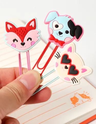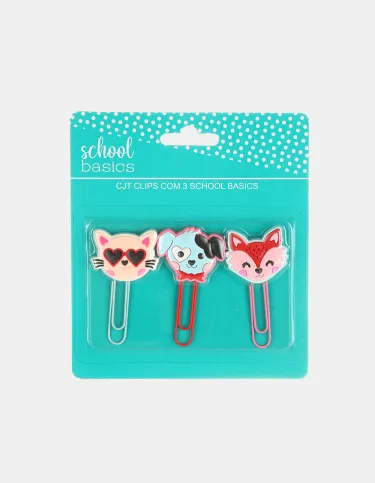 Este set incluye 3 clips metálicos decorados con figuras de animales.