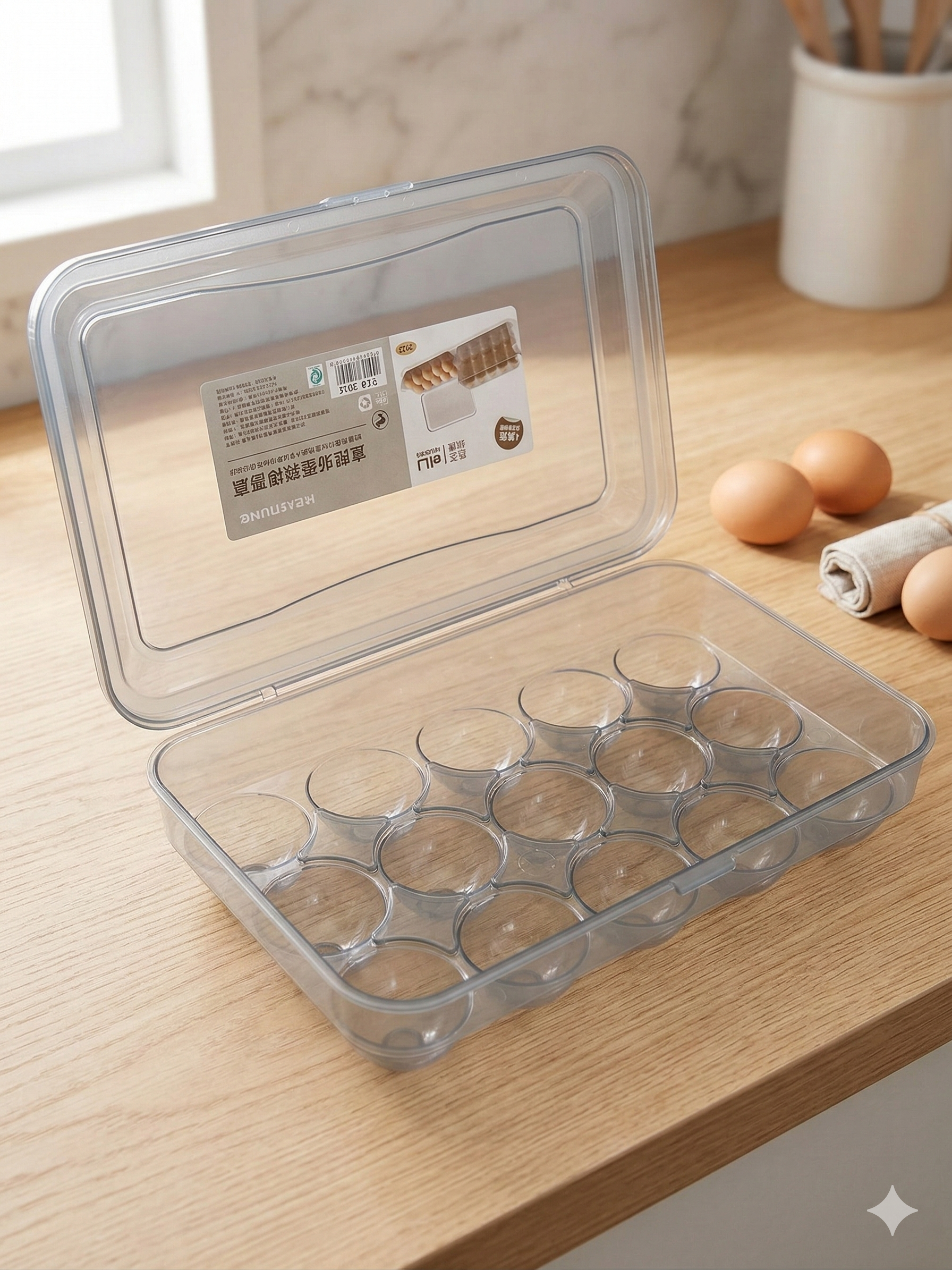 Mantene tu Heladera organizada con este contenedor para huevos con tapa. Posee espacio disponible para 15 huevos