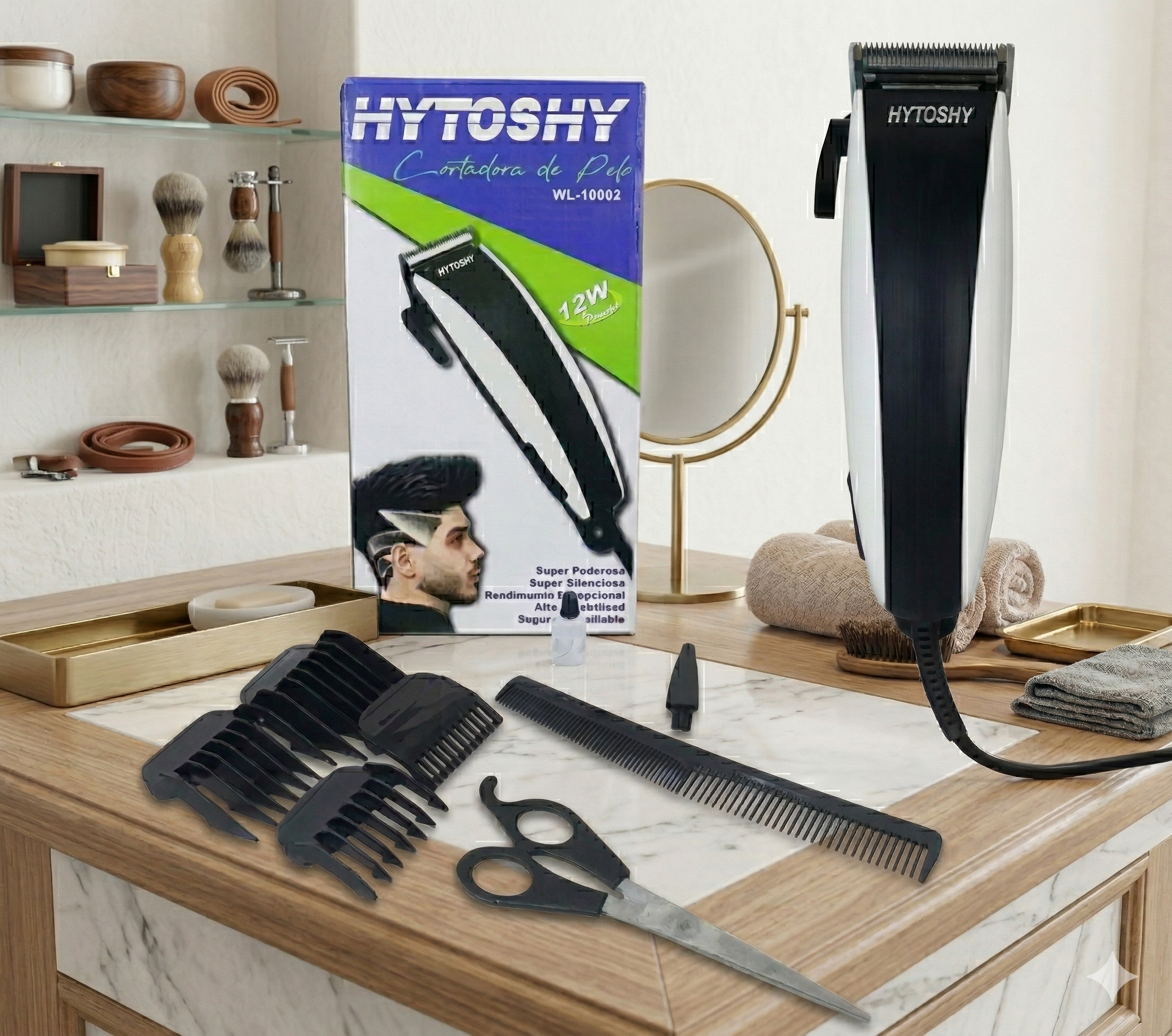 – Accesorios Incluidos: Cubierta para cuchilla, tijera, aceite lubricante, cepillo de limpieza y peine de peluquería.