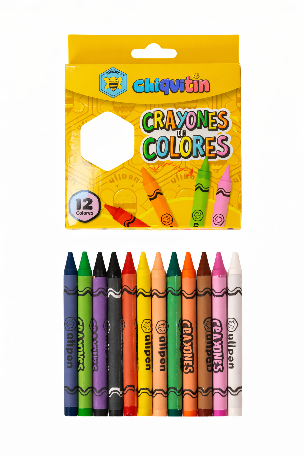 Crayones de 12 colores vivos, ideales para los chicos desarrollen su creatividad, perfecta para colorear en casa o escuela.