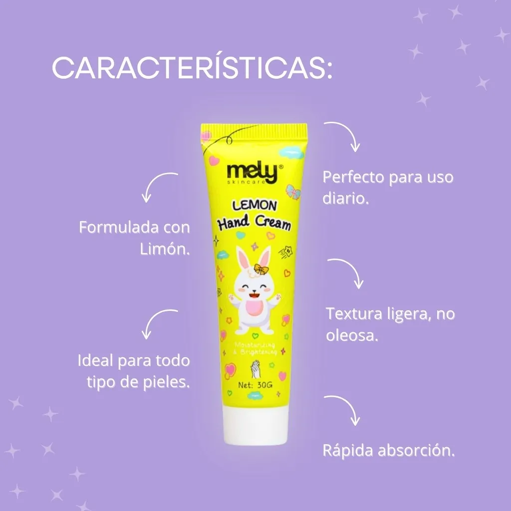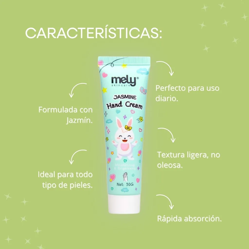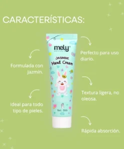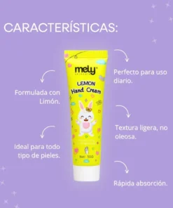 Esta es una crema de manos Mely. Hidrata y repara la piel seca.