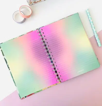 Cuadernos A5 Perfectos para las notas del día a día, llenar tus apuntes de color y diversión Incluye: TAPA DURA ✅20 hojas rayadas de colores???? ????️ Hoja para usuario y contraseña ????️ 11 hojas de notas ???? Sobre para guardar todo lo que se te ocurra ✨Algunas pueden venir con Plancha de stickers, El anillado pasa por algunas stickers, impidiendo su uso y esto no es considerado defecto Algunos se en encuentran un poco manchados y esto no se considera defecto ni se aceptan devoluciones por este motivo