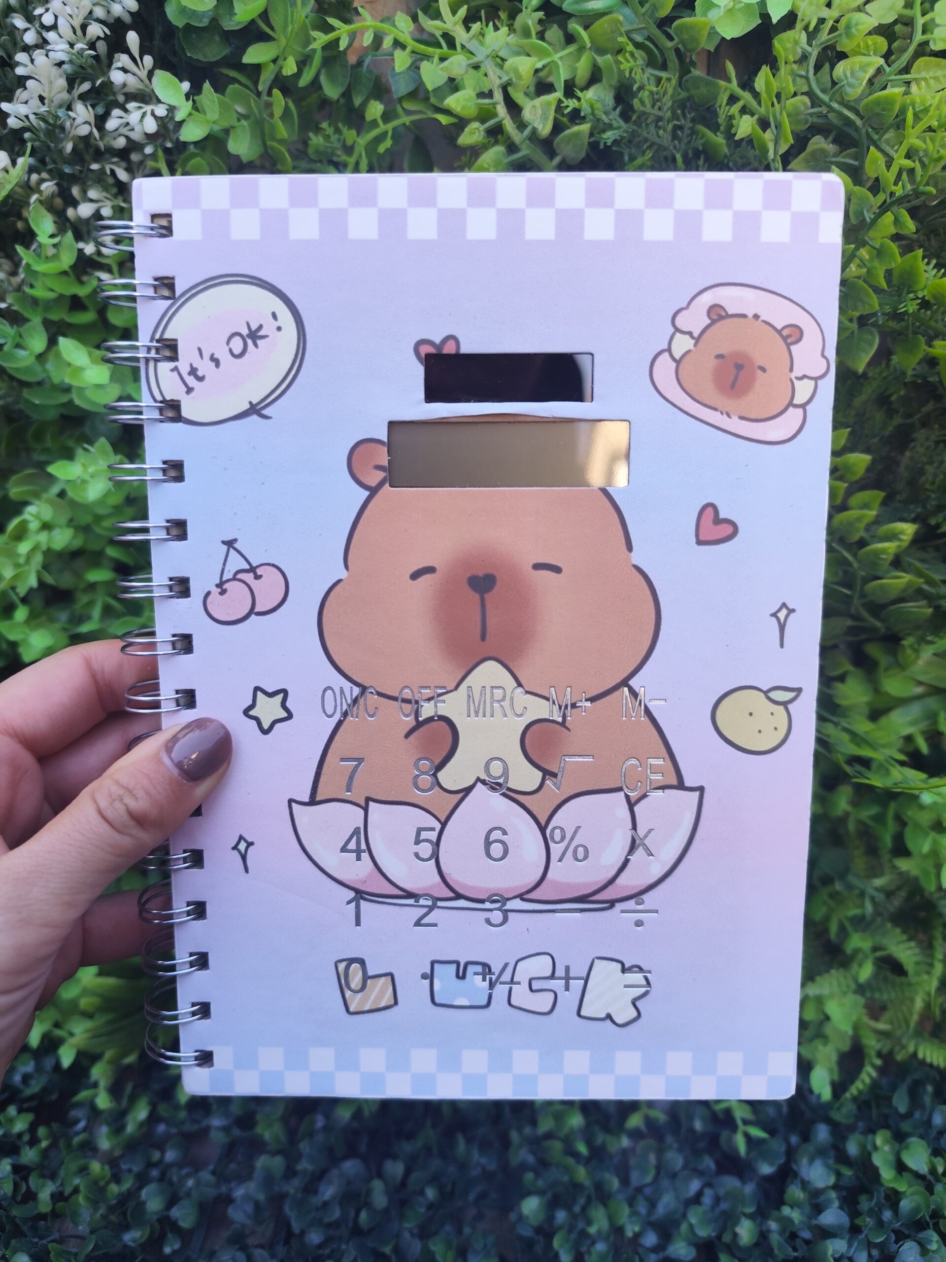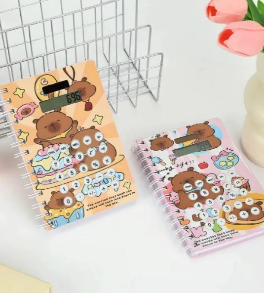 Este cuaderno con 80 hojas rayadas es perfecto para la escuela, oficina o llevar en la mochila. Su diseño de capybara no solo te va a sacar una sonrisa, sino que también incluye una calculadora funcional incorporada en la tapa para que hagas cuentas rápidas cuando lo necesites.