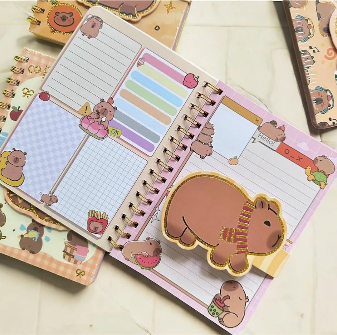 ????Agenda capibara 70 hojas, cierre con velcro.