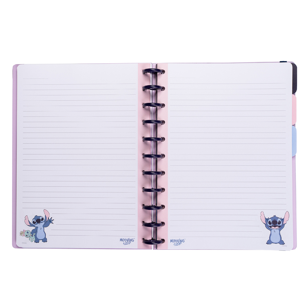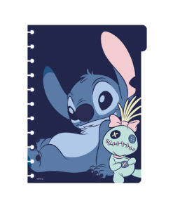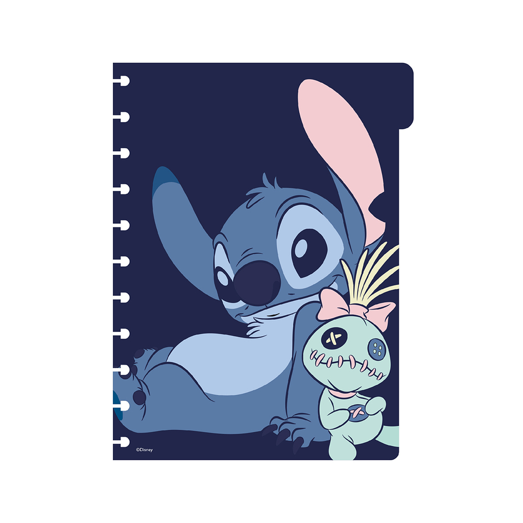 Descubre el cuaderno con sistema de discos de 80 hojas rayadas de 90gr, ideal para tus notas diarias. Incluye carátulas con tabs, una plancha de stickers, un stencil y un sobre de plástico. Stitch le da un toque especial y único. ¡Organiza tus ideas con estilo y funcionalidad!