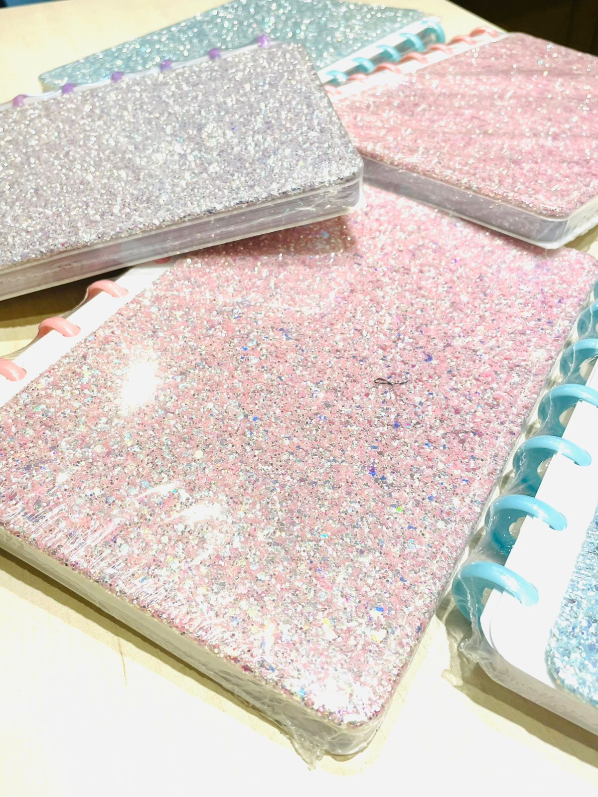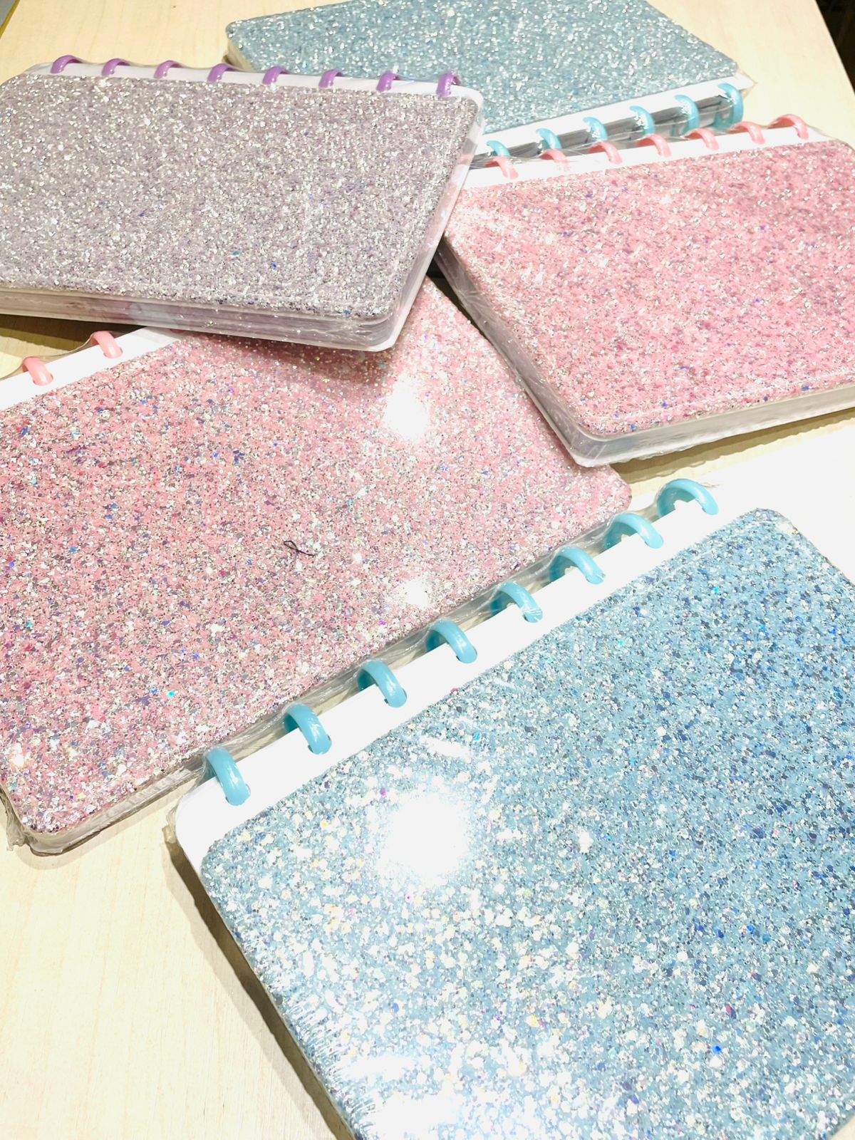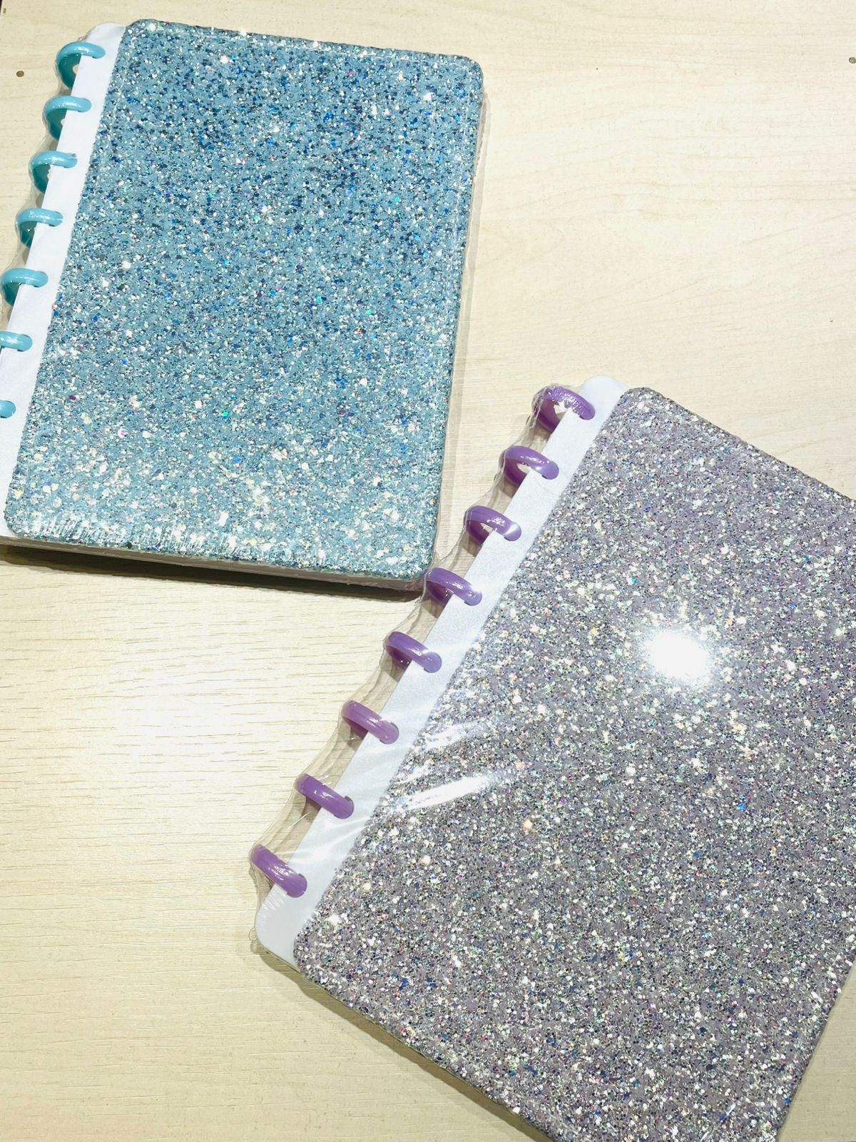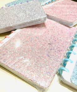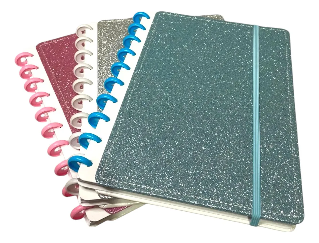 Cuaderno rayado con discos y mucho Brillos