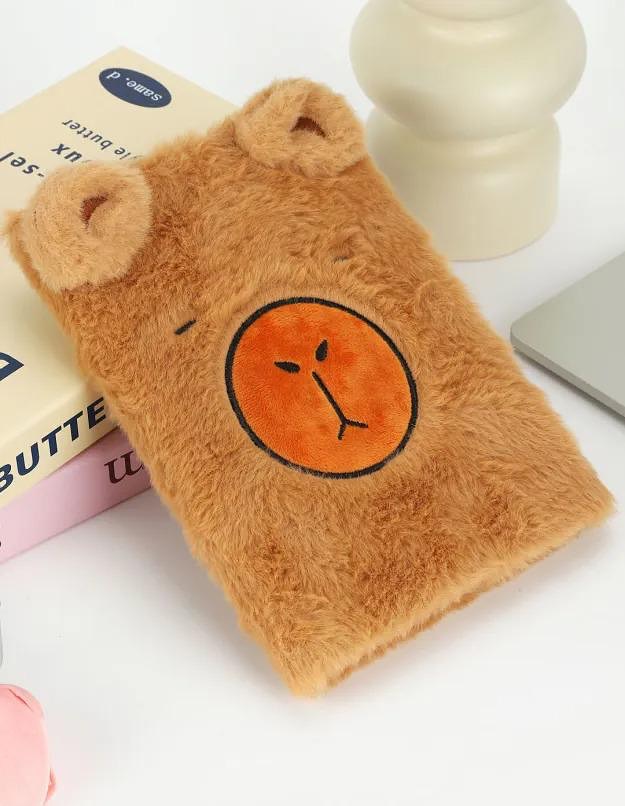 Anotador peluche de tapa dura con 80 hojas rayadas, diseño de capybara