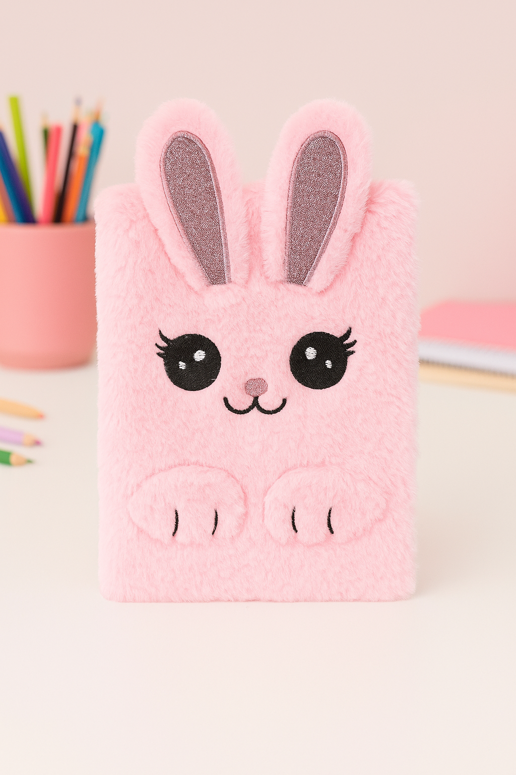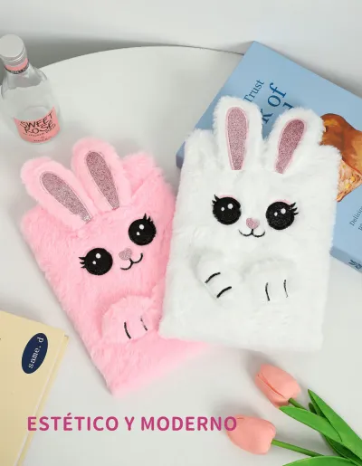 Anotador peluche de tapa dura con 80 hojas rayadas. con diseño de conejito, ideal para notas, escritura y uso escolar.