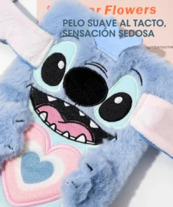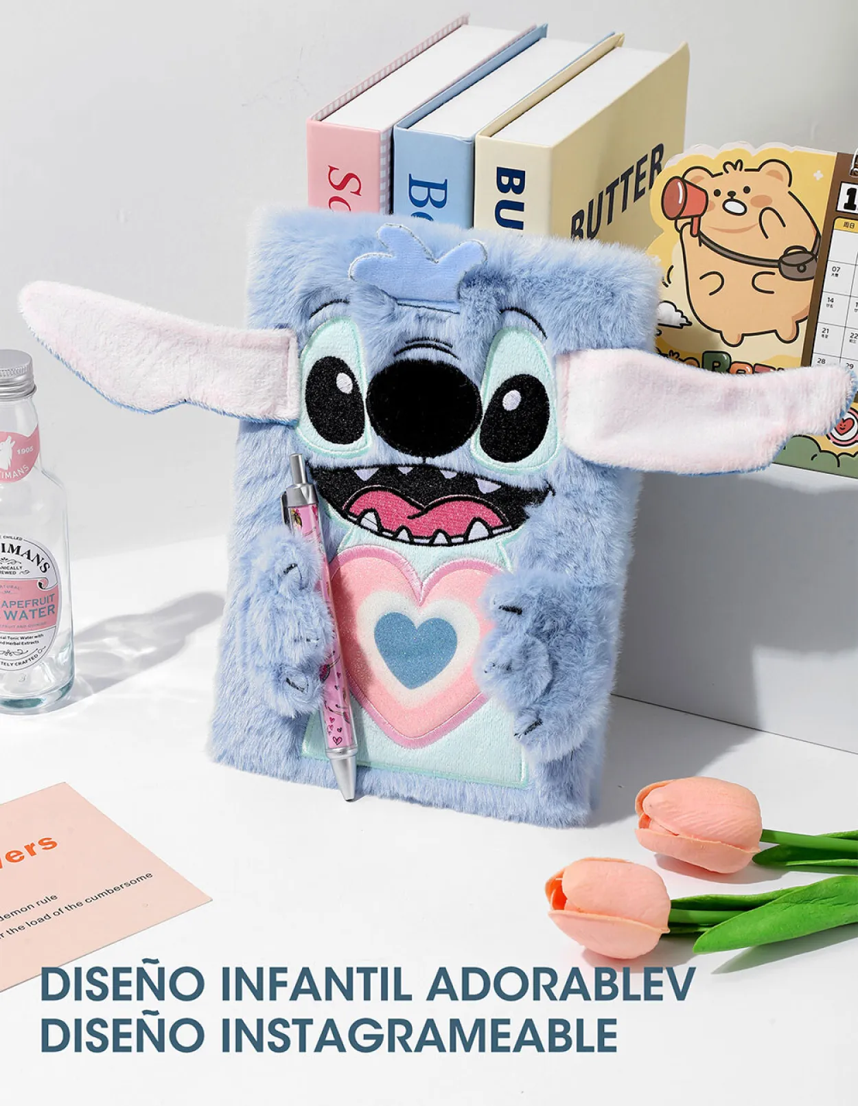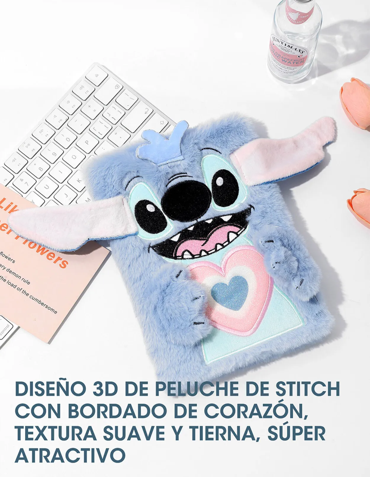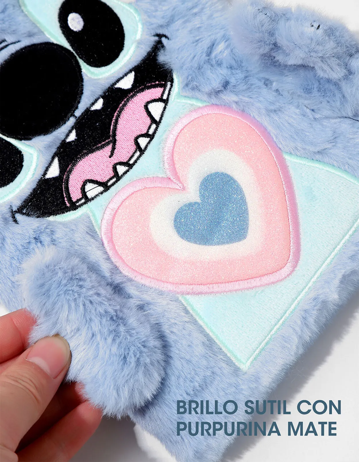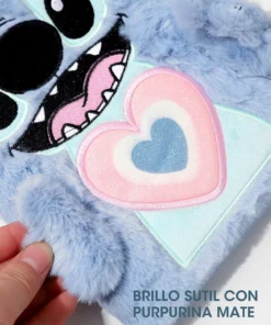 Cuaderno cosido con cubierta de peluche y diseño animado en relieve, suave al tacto y llamativo.