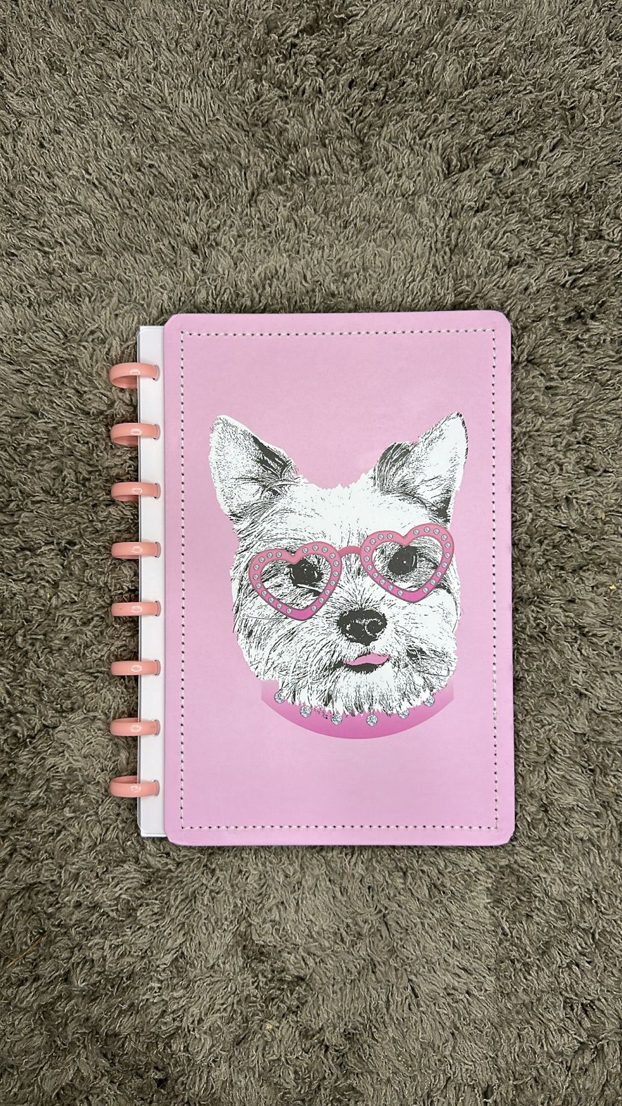 Cuaderno rayado con discos, diseño de perrito