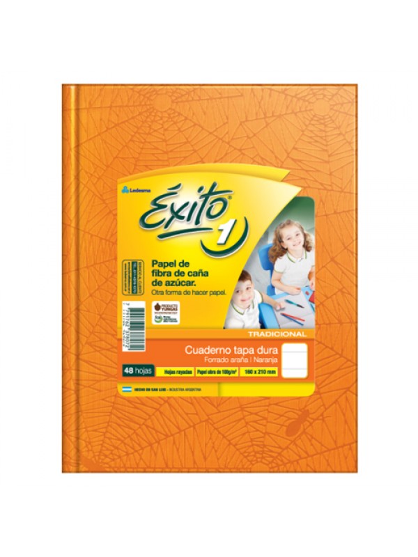CUADERNO TAPA DURA FORRADO EXITO x48 HOJAS NARANJA RAYADO