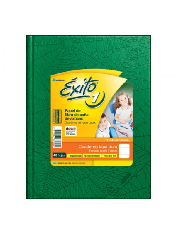 CUADERNO TAPA DURA FORRADO EXITO x48 HOJAS VERDE RAYADO