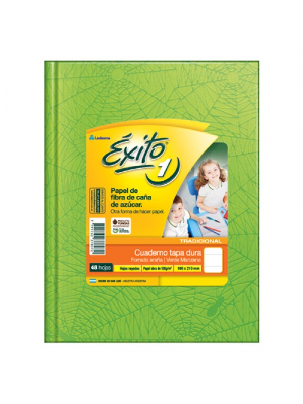 CUADERNO TAPA DURA FORRADO EXITO x48 HOJAS VERDE MANZANA RAYADO