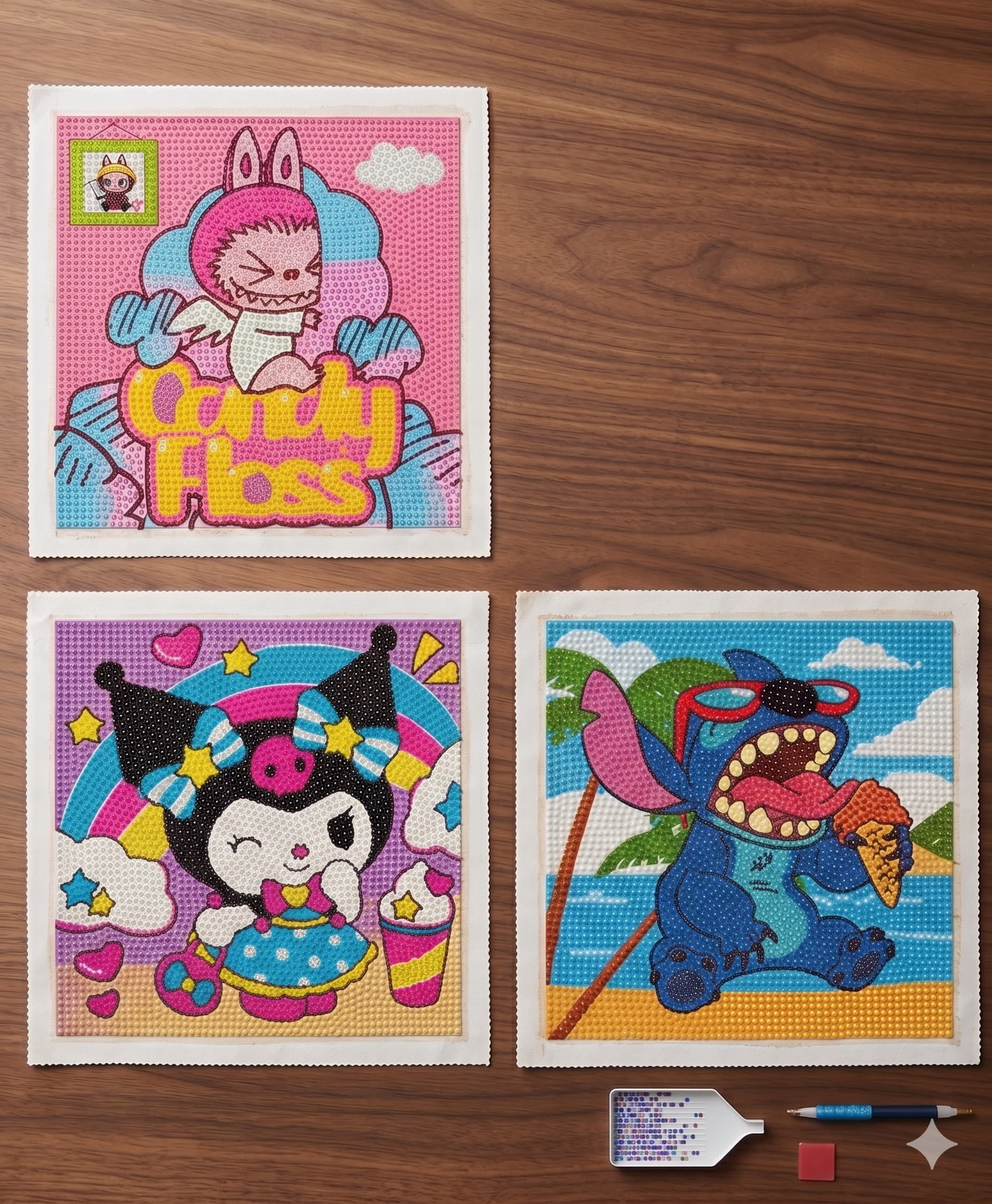 Stitch, kuromi, sanrio y labubu
