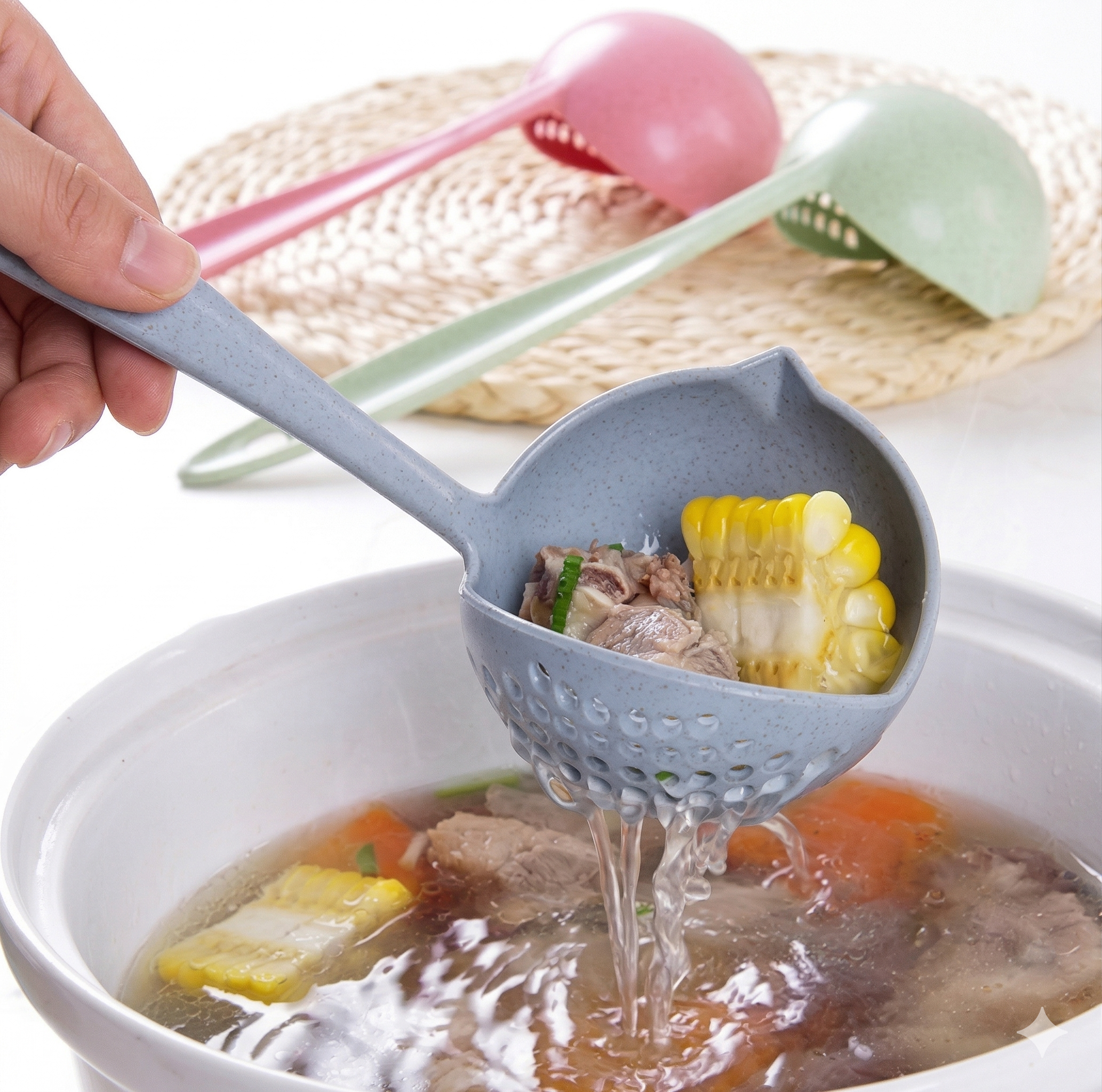 Cuchara con colador y punta vertedora