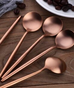 La cuchara de postre está hecha de acero inoxidable de alta calidad, que nunca se doblará ni se oxidará, y es bastante duradera. No hay necesidad de preocuparse por que la pintura se caiga y se puede almacenar durante mucho tiempo.