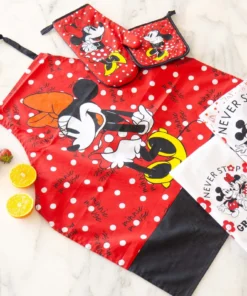 Lleva la diversión de Minnie de Disney a tu cocina con el delantal Disney Home. Este delantal con pechera 100% algodón, es el match perfecto para que cocinar sea más divertido. Con cinta en la cintura para ajustar a tu medida Hecho 100% algodón, este delantal de cocina es liviano y transpirable pero también duradero y absorbe y libera fácilmente la humedad.