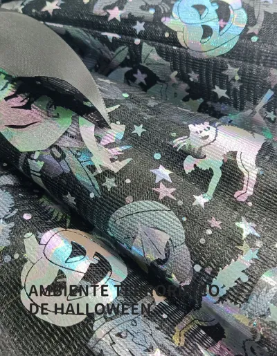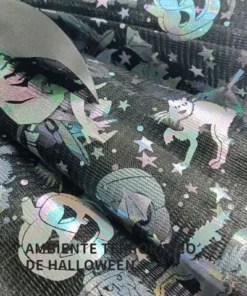Disponible en colores negro, naranja y violeta con detalles de murciélagos y motivos tenebrosos.