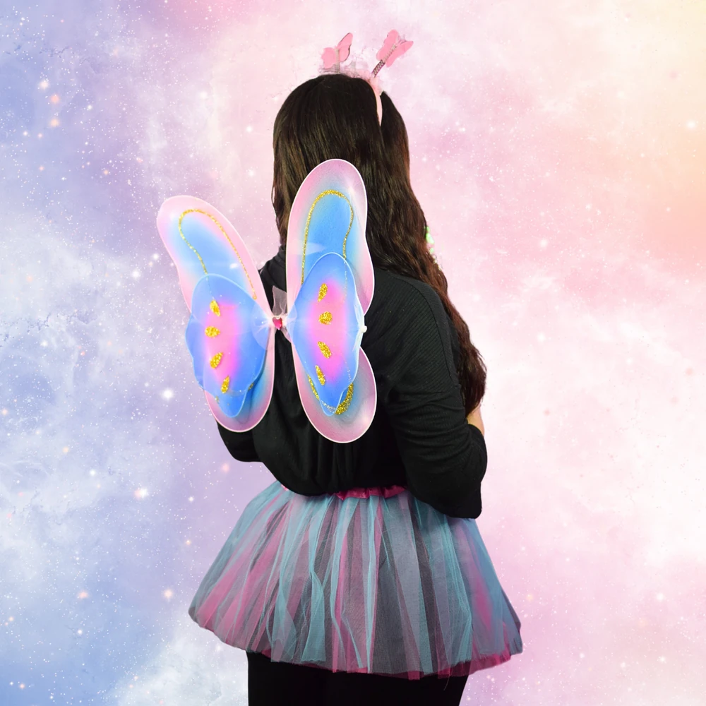 SET DE DISFRAZ DE HADA BAILARINA QUE INCLUYE: ALAS, POLLERITA TUTÚ CON LAZO Y VARITA MÁGICA.