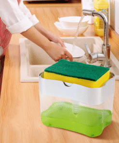 Dosifica el detergente cómodamente y permite guardar la esponja en un lugar organizado, por eso es ideal para la cocina.